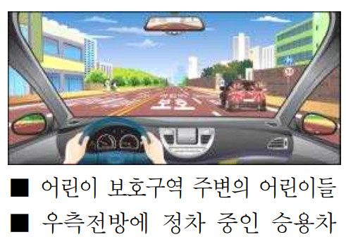 | ¹®Á¦Çؼ³ | º¸ÀÌÁö ¾Ê´Â °÷¿¡¼ À§ÇèÀÌ ¹ß»ýÇÒ ¼ö ÀÖÀ¸¹Ç·Î À§ÇèÀ» ¿¹ÃøÇÏ°í ¹Ì¸® ¼Óµµ¸¦ ÁÙÀÌ°í ¿ìÃø Â÷·®ÀÇ ¿òÁ÷ÀÓÀ» Àß »ìÆì¾ß ÇÑ´Ù. ¶ÇÇÑ ¾î¸°ÀÌ º¸È£±¸¿ªÀ̹ǷΠ¾î¸°ÀÌÀÇ µ¹¹ßÇൿ¿¡ ÁÖÀÇ ÇÏ¿©¾ß ÇÑ´Ù. |